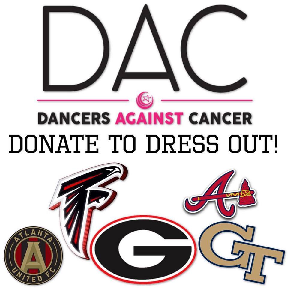 This week of October 9th, donate at least $1 per day, and you can dress out in your favorite team apparel for class! Sports jerseys, t-shirts, or any spirit wear can be worn. All proceeds benefit Dancers Against Cancer (DAC). We will have a photo booth setup, so please take lots of pics and post them on social media! Be sure to use the Snap filter that we have setup as well.